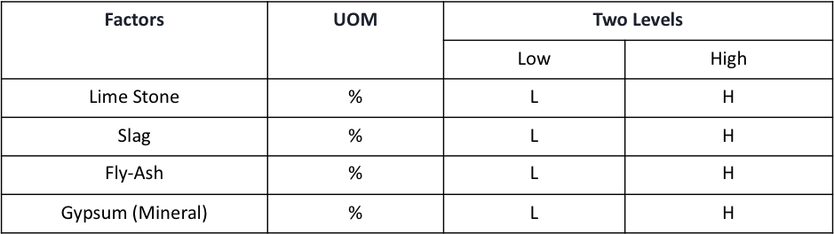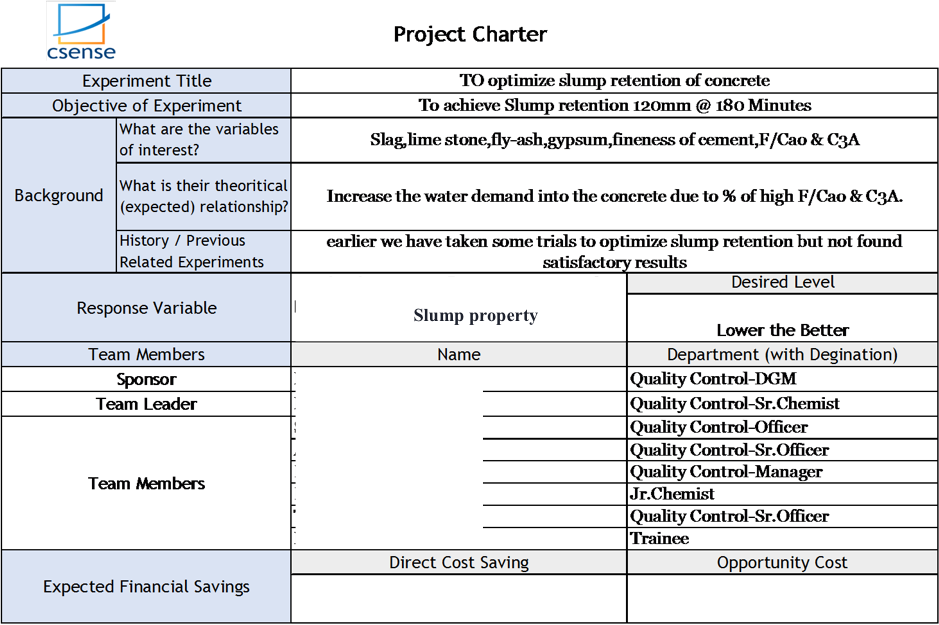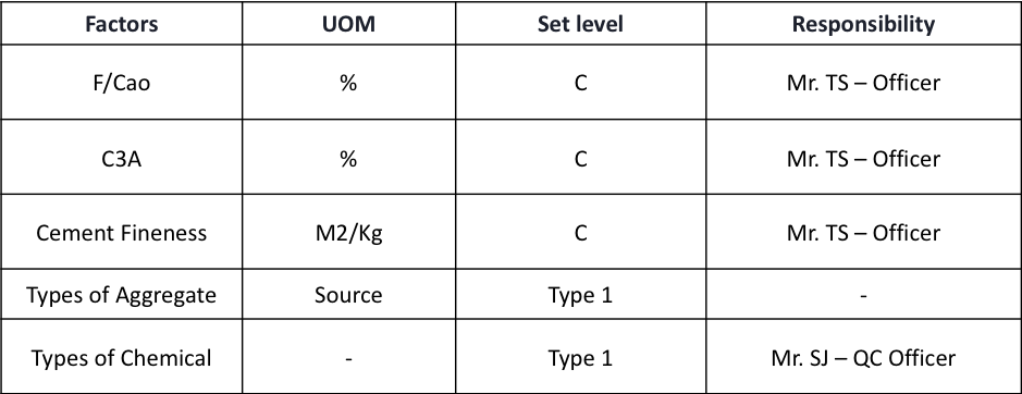 I proposed to conduct the Design of experiments to arrive at the key factors affecting the slump property and their corresponding settings.