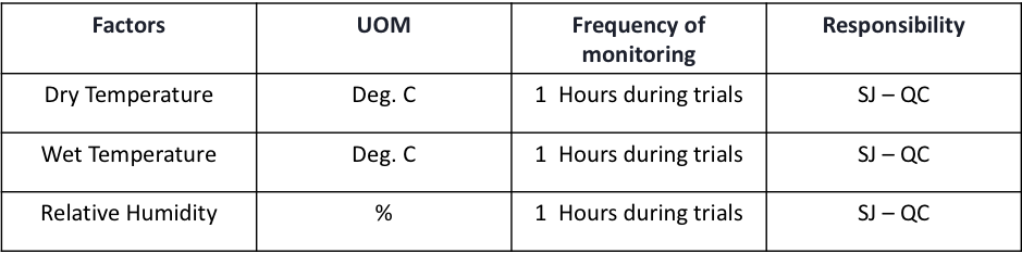 Most of the experiments fail not because of the experimental design but because of failure to control the constant factors and track the noise factors. Hence, we assigned responsibilities to the team members to ensure the constant factors are kept constant throughout the experiment and keep a track of noise factors.