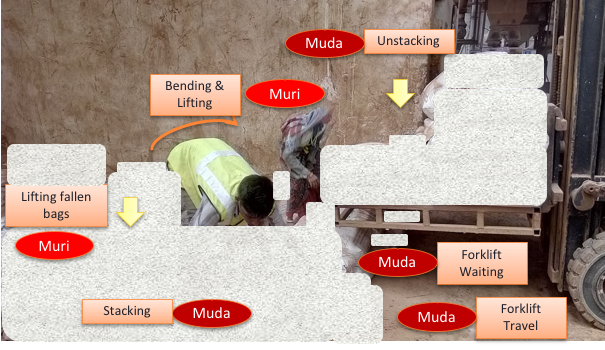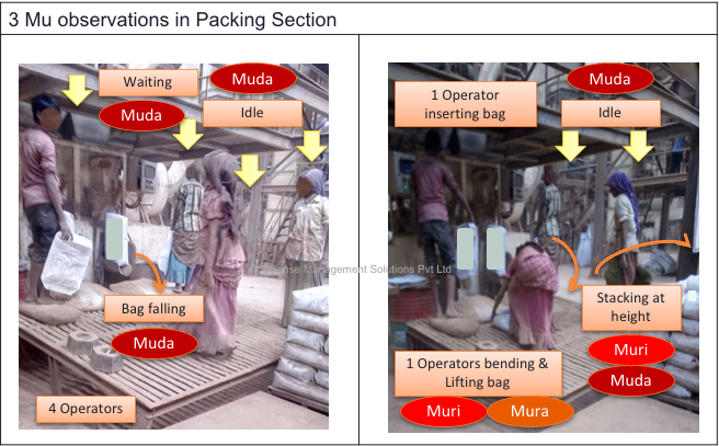 Then I conducted the Kaizen observation of 3 Mus in the packing section. I recollected my Kaizen Guru’s words, “When you don’t know what to improve in a shop floor, just go and observe the Mus.” That’s what I did.