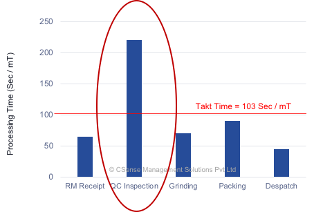The first step is to see the flow of processes using a process flow diagram. It took us less than two hours to construct a rough sketch of their entire operations from RM receipt to despatch. This was the scope of the study we defined in that meeting.