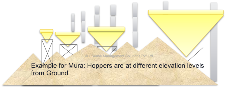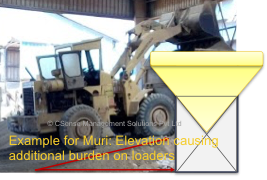 The Mus observations showed that the height of the RM feeding hoppers was uneven. They kept the hoppers at the elevation of 10 to 20 feet above the ground level (for no apparent reasons). Due to this height, the loaders took more fuel to climb and to carry material.