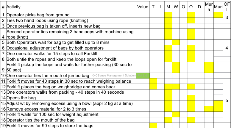 Also constructed a detailed list of wastes in the packing section. A sample of a 1-ton bag packing section is shown here.