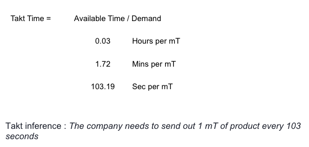Takt is a German word meaning Conductor’s Baton. Takt time is the time provided by the customer for completing the process of one order at a supplier’s facility. It is also called the customer demand rate or demanded exit rate. It is used to match (synchronise) the manufacturing/service processes to meet customer demand.