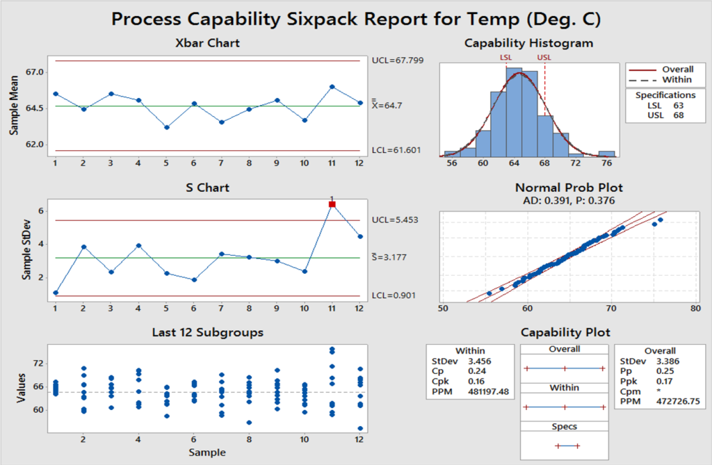 If our data fits satisfactorily with Normal curve model, then we use this model to calculate Process Capability. We here discuss three methods of calculating process capability, viz., Defects Per Million Opportunities (DPMO), Process Capability Index – Corrected Process Capability Index (Cp & Cpk) and Standard Normal Approximation method. We learn all these tests in the Minitab Training.