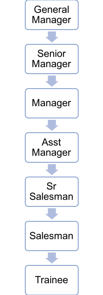 ஒருவரது பதவி அவரது சீனியாரிட்டி, கல்வித் தகுதி போன்றவற்றால் நிர்ணயிக்கப்படும். அவர் விற்பனைத் துறையில் GM ஆக இருக்கலாம். ஆனால், விற்பனைத் துறையில் மேனேஜர் ஆக உள்ள ஒருவர் அந்தத் துறையின் தலைவராக இருப்பதற்கு அவர் GM ஆக இருக்கவேண்டும் என்பது அவசியம் இல்லை. அந்நிறுவனத்தின் சேல்ஸ் மேனேஜரே அதன் HoD ஆக இருக்கலாம்.